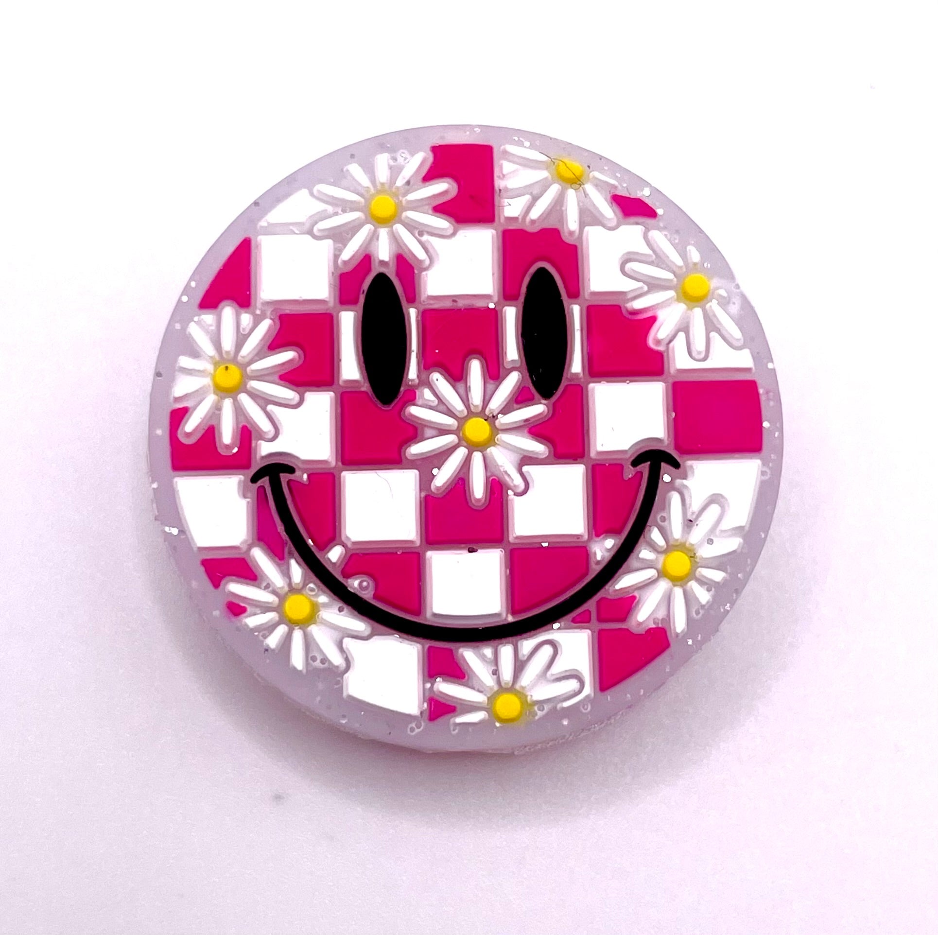 Checkered Daisy Smiley Focal Bead