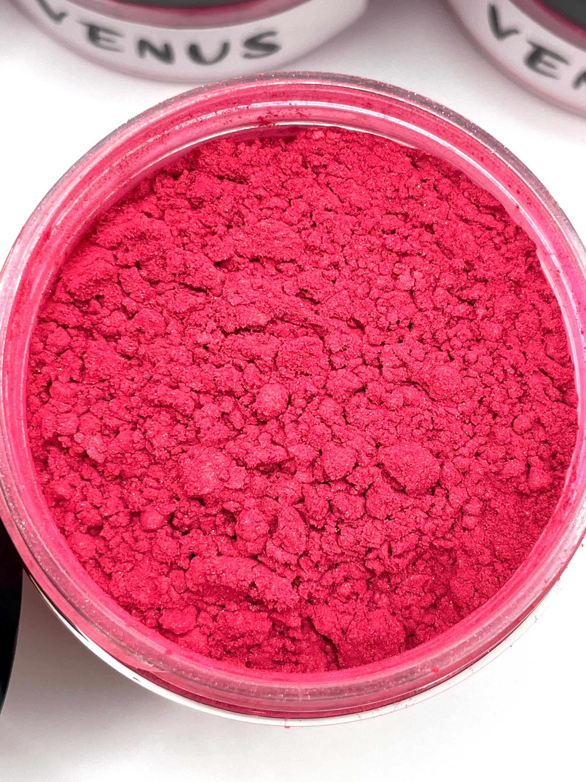 Venus is a Deep Pink Pearlescent mica powder. All of our powders are high quality, cosmetic grade, skin safe, & PH balanced.